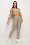 Legging lindíssima. A cor é muito elegante. Não fica transparente, possui uma cobertura interna escura. O tecido canelado é diferente, com menos elasticidade, mas serviu o meu tamanho usual.